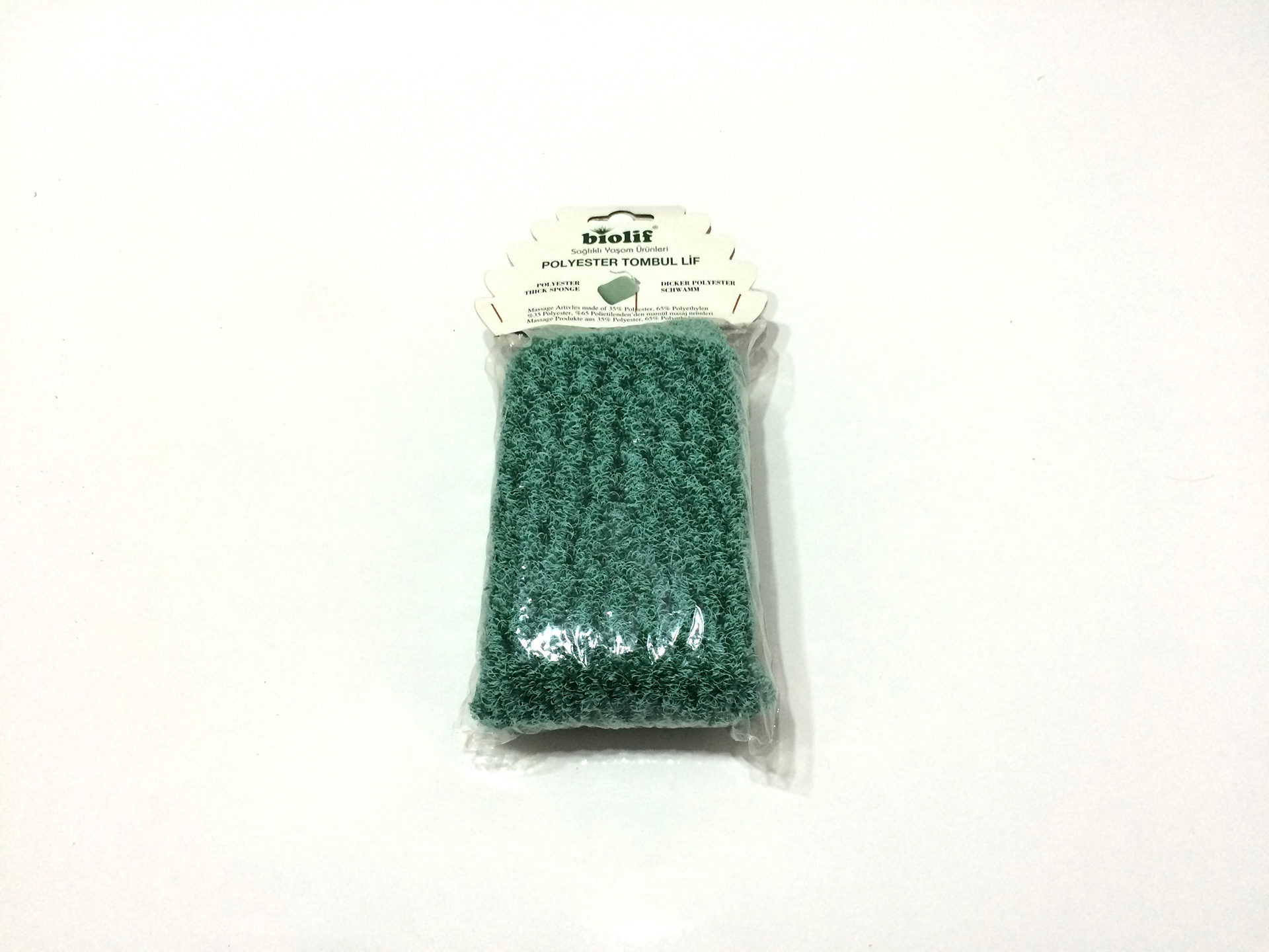 %35 Polyester, %65 Polietilenden mamül banyo süngeri.